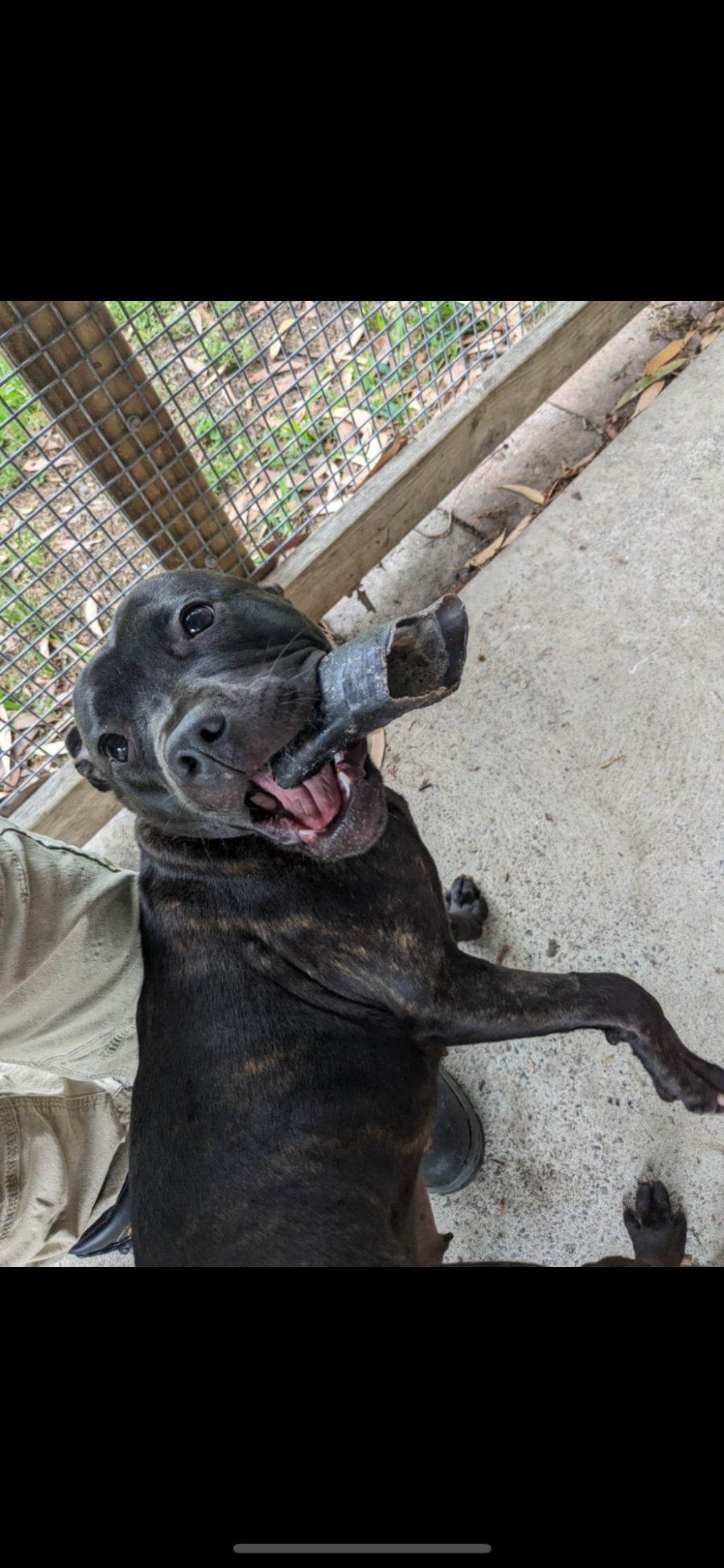 Bella is an English staffy size little girl. She was found wandering and after a while of trying to find the owner we discovered her owner had passed away. She loves attention and walks well on a lead when settles down.
