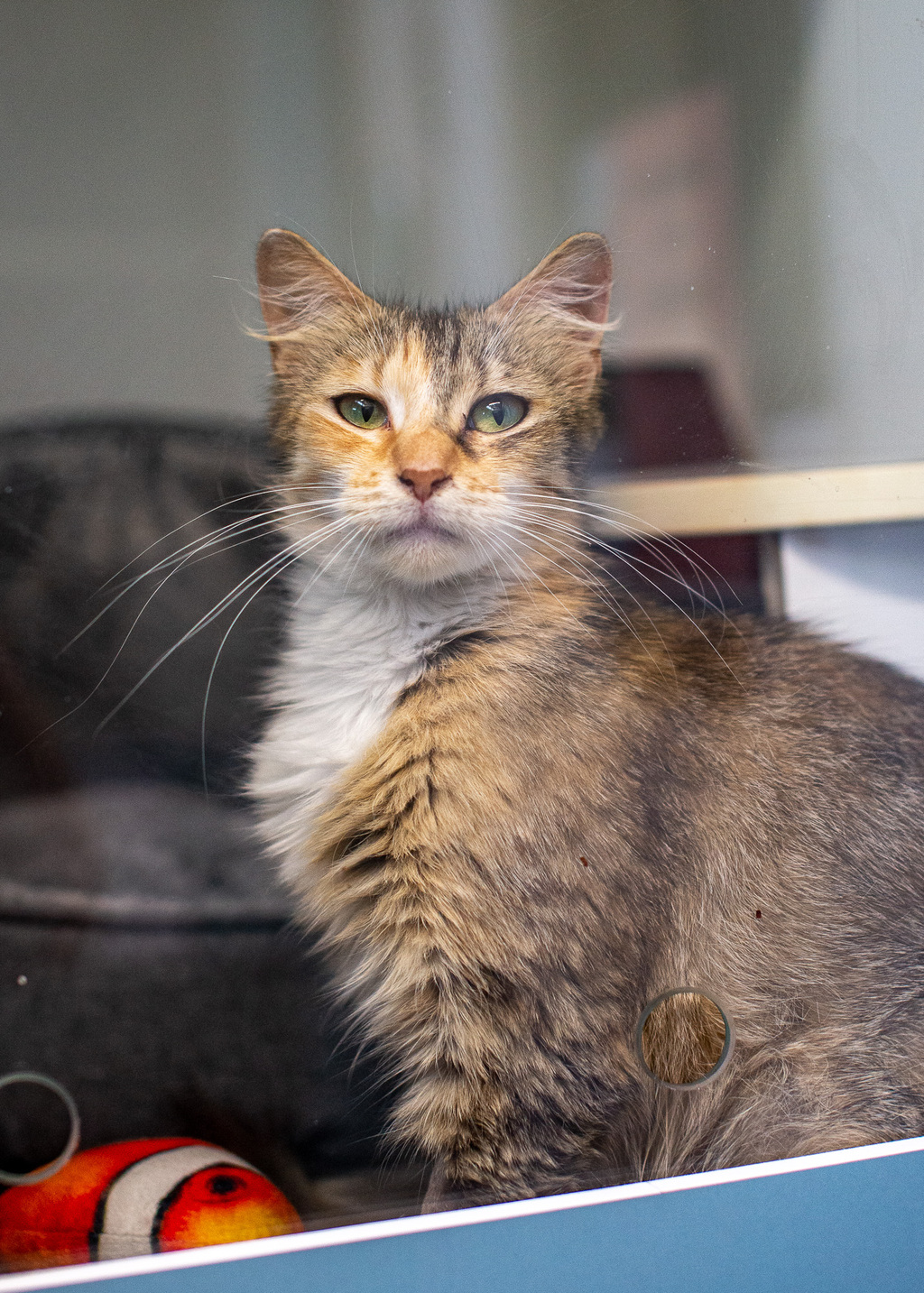 Angelina came into our care heavily pregnant, and went straight into foster care so she could have a safe space to raise her kittens. Her bubs have now all left the nest, and its Angelina's turn to find a loving family that she can smother with affection and fun. She is a social butterfly who has lived with other cats and dogs, and enjoys the company of her people. She is still active and loves to play, but also enjoys her down time curled up in a sunny spot.