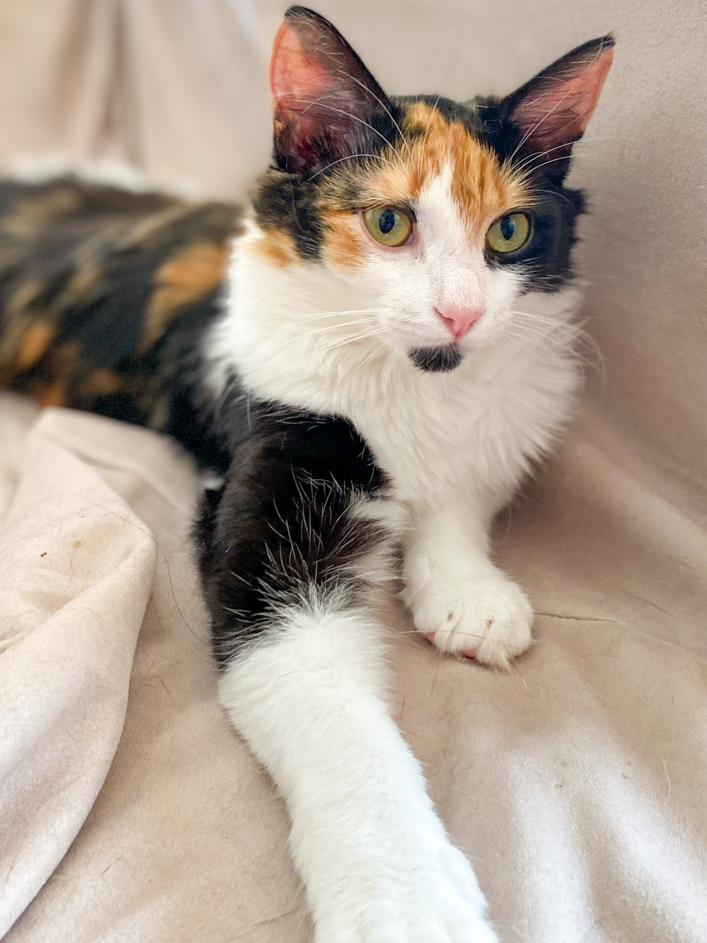 Taffeta is a really sweet girl who is turning into quite the cuddle bug. She can be shy at first but once she gets to know you she loves being picked up and given scratches. She's very inquisitive and likes to follow you about.