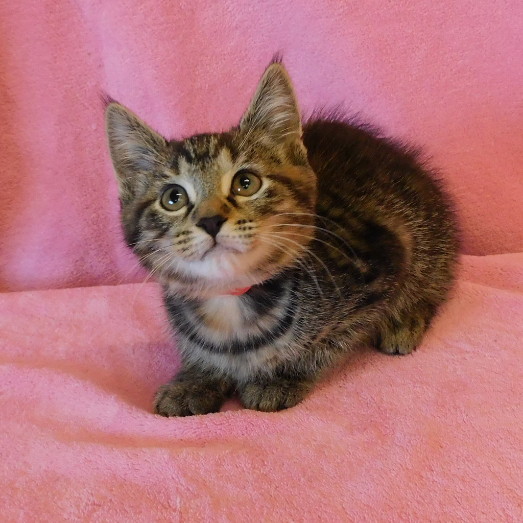 Emily is a playful and affectionate kitten who has grown up in foster care. She loves to explore and play, but she especially loves getting all the attention she can from people. She's always happy to greet new people with a purr and a head butt! She's curious about everything, so she'll need plenty of toys to keep her entertained. Emily is the perfect companion for someone looking for an outgoing and loving kitty. She'll bring lots of joy to any home she joins!
