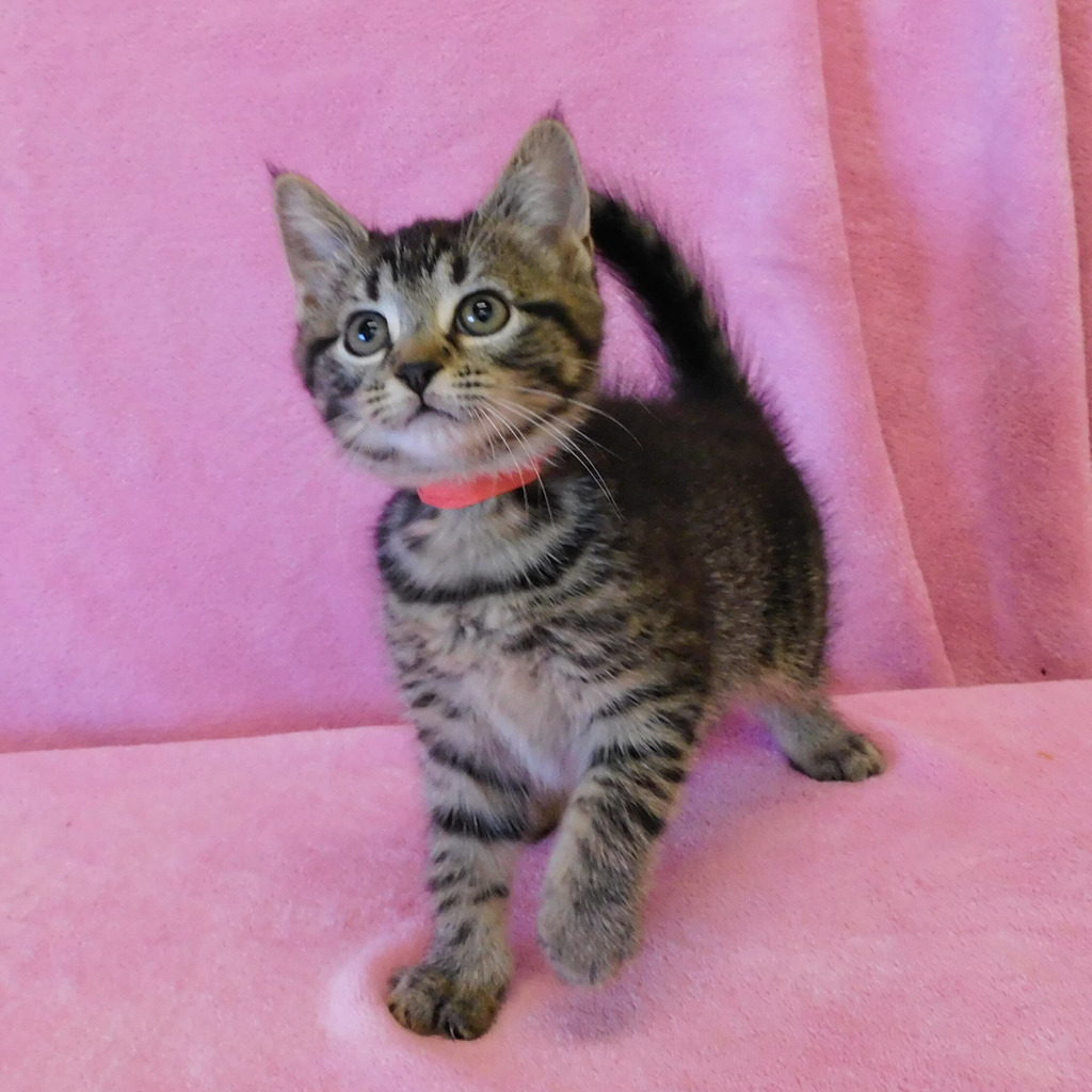 Spencer is an energetic and affectionate kitten who is looking for a forever home. She was brought into a foster care home as a young kitten, so she has known the warmth of being loved since she was very young. She loves to play, and she adores people. Her favorite activities include chasing after toys, snuggling up on laps, and getting lots of love from her human companions. Spencer is also quite intelligent; she is always eager to learn new things, and loves to explore her surroundings. Spencer would be the perfect addition to any home that can offer her the love and attention she deserves.