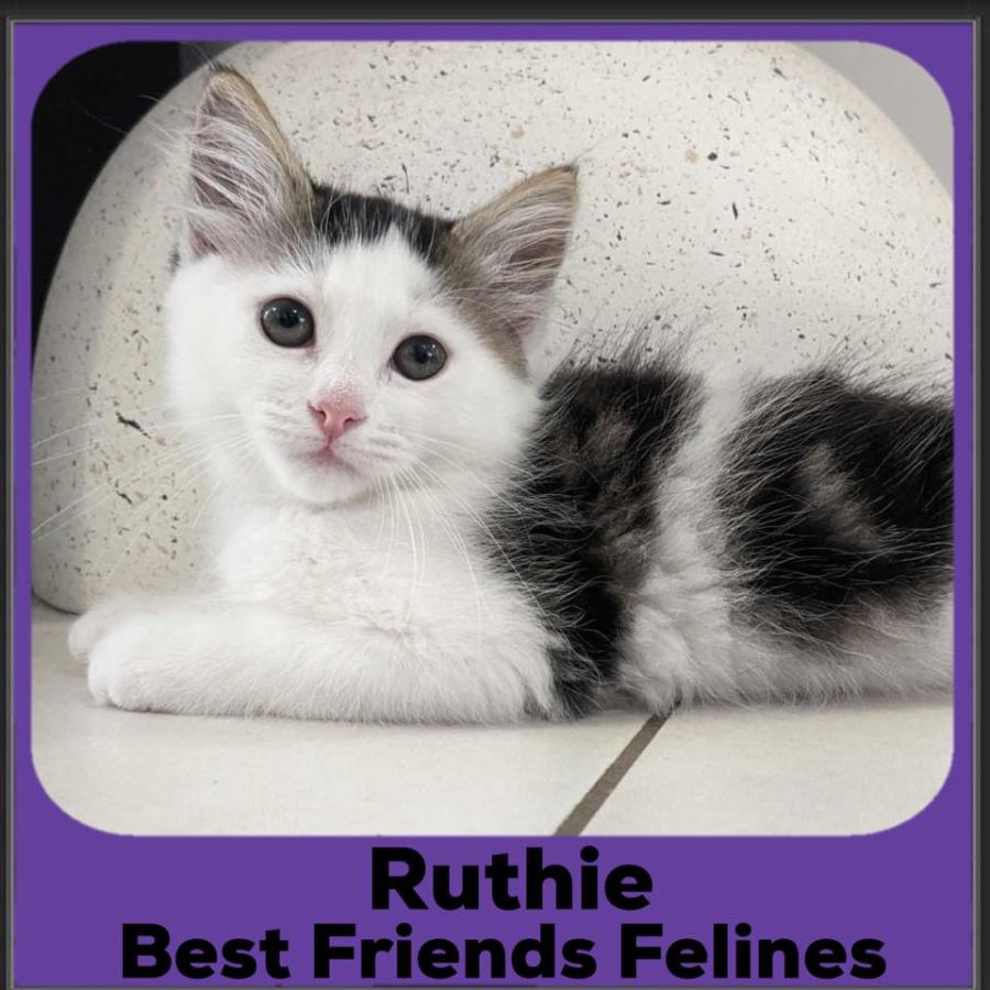 Let me tell you about Ruthie, the most adorable fluffy kitten I've ever seen! Ruthie was born in care, and she's just the cuddliest little ball of fur you can imagine. Whenever you pick her up, she immediately starts purring. And boy, is she fun and excitable! She's always chasing after toys, pouncing on imaginary prey, and doing those adorable little kitty zoomies around the house. You can't help but smile and laugh when you're around her. Ruthie is truly a bundle of joy!