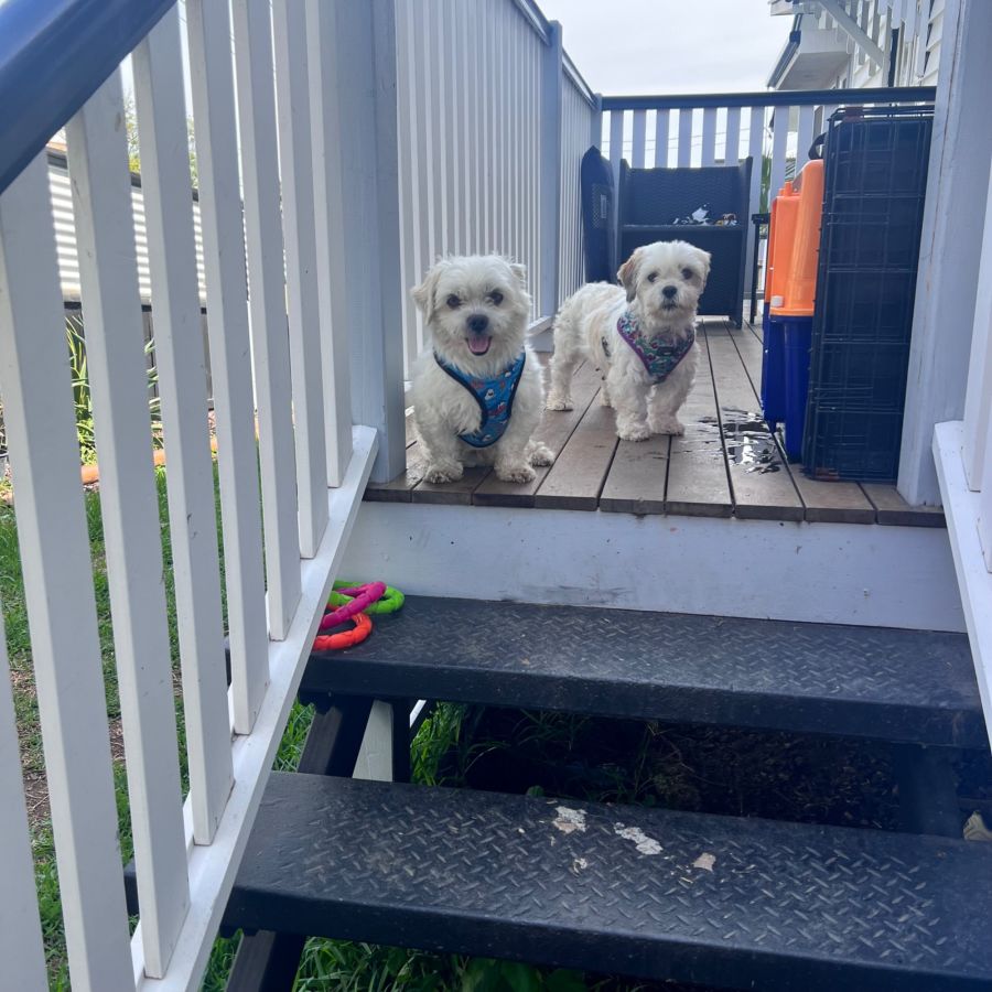 Currently residing in Indooroopilly, these two are eagerly waiting for their next adventure with a loving family. They have yet to meet any kittens, so their behaviour around cats is a grey area. However, with their fun-loving and welcoming nature, they might just befriend them.