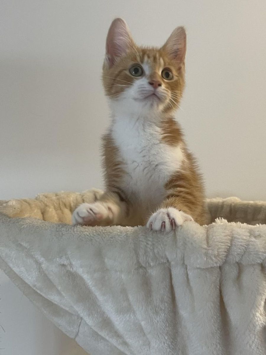 Meet Dex, a gorgeous ginger and white feline with an incredibly sweet nature. His supercharged purr is undeniably endearing, and it's sure to warm your heart every time you hear it.
