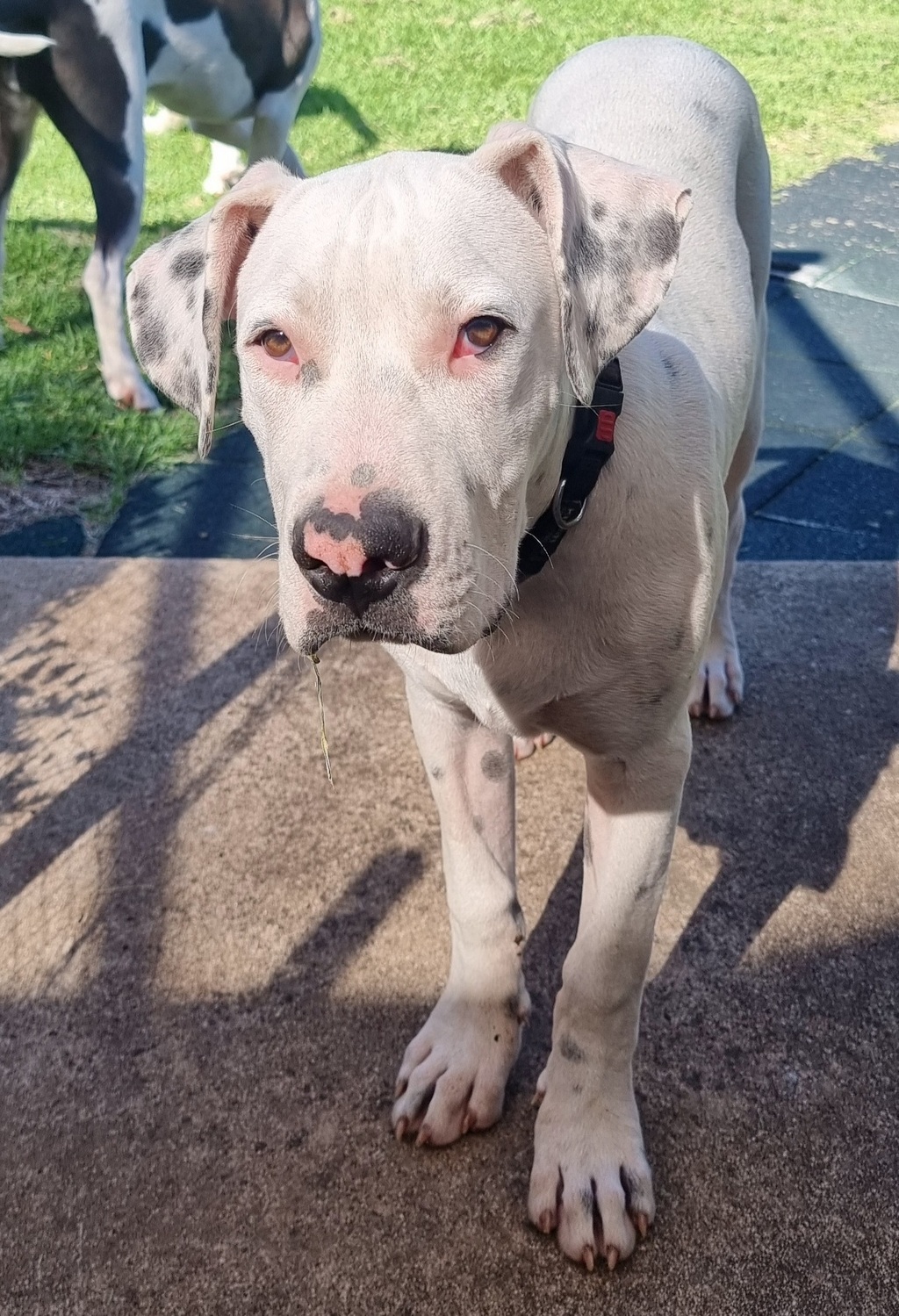 He is a Staffy X Bull Arab and he has a great nature. He's pretty reserved ,however he enjoys a good game of catch me if you can with his sister and his other foster siblings.