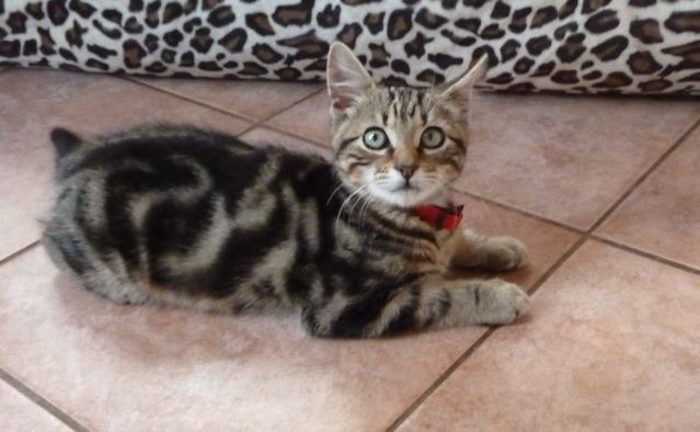 Linus is a 12 week old tabby male. He's a sweet and lively kitten who is loves playing with all of his toys and is just as happy to sit in your arms for a cuddle and a purr
