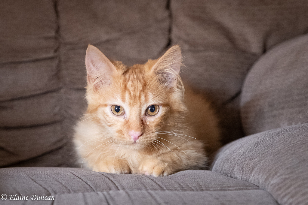 We think Clyde may have some very expensive genes, he is a very big kitten and has the look of Maine Coon about him especially now that he is healthy and happy. He has gorgeous ear whiskers and a beautiful, long, fluffy tail.