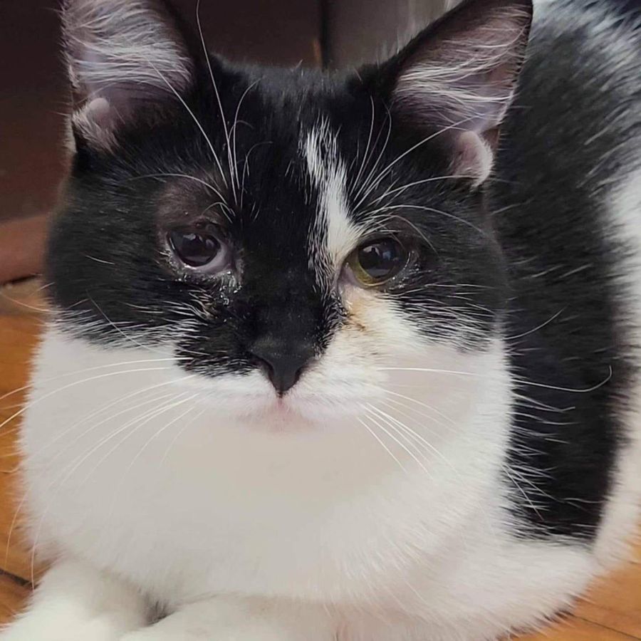 Poor Dani had a horrible start to life with cat flu that almost took her life. She is a flu survivor has been left with her eye lid adhered to her eye. Our eye specialist has recommended no further action required. She may get weepy eyes in times of stress but is otherwise cleared for adoption. Her case notes can be sent to her adopter’s new vet.
