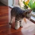 Jesse is an independent kitten and does not require a lot of human interaction. He likes pats and being picked up.for short periods and will sit on the couch beside you. We feel once he is in a home with another quiet cat or dog, he will enjoy more couch and lap time.