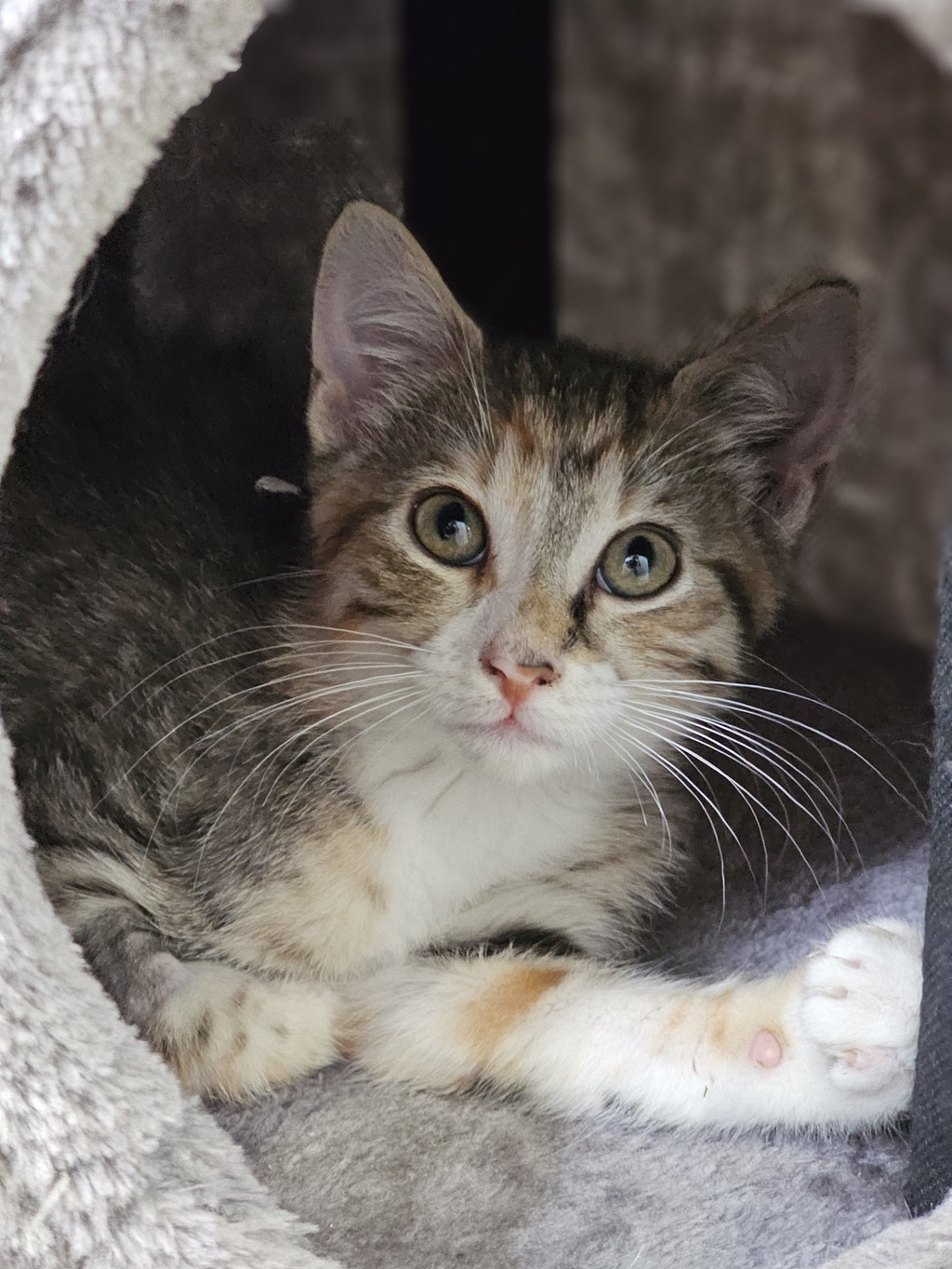 I have perfected the art of the irresistible purr. It's like my secret weapon for getting all the cuddles and chin scratches I could ever want. Life's just one big, exciting string of moments, and I'm here to make every second count - whether I'm chasing my tail or sharing some purr-fectly quiet time with my favourite humans. So, if you're up for a bundle of furry fun and a lifetime of companionship, please consider adopting me!