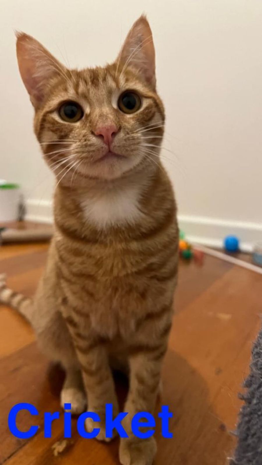 Cricket is an energetic kitten that's all about chasing after bugs, playing with toys on a string, and pouncing on an elusive laser beam.