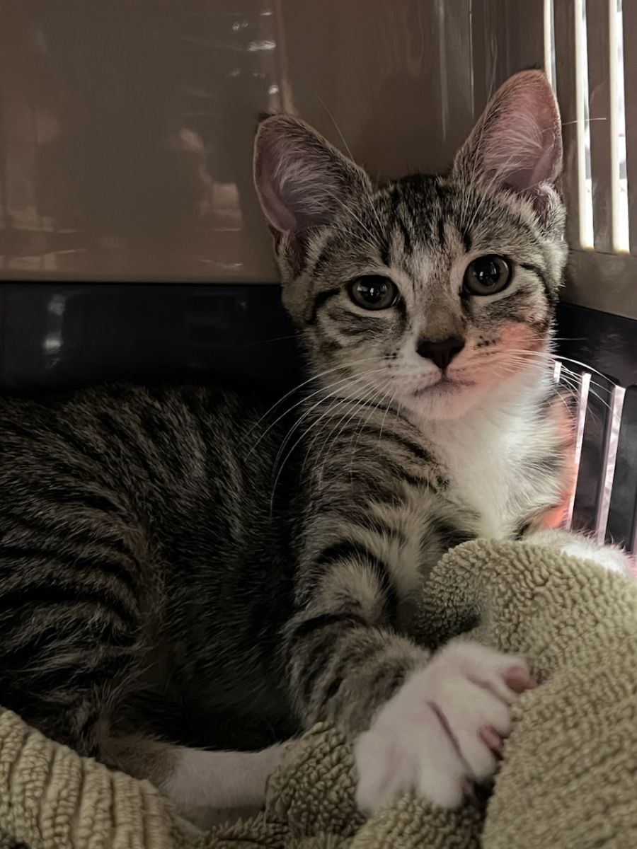 Zara is a playful kitten who enjoys a good cuddle, whether that's curling up on your lap or rolling onto her back for a gentle belly rub. She has a gentle, soothing purr that can lull anyone into a state of blissful relaxation. Zara's interactive nature makes her a wonderful companion; her playful demeanor is not only entertaining but also a beautiful reflection of her joyful spirit.