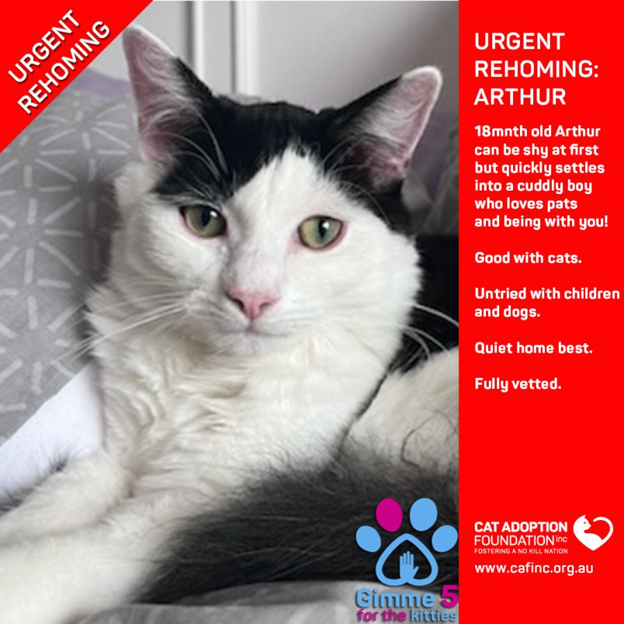 Donate to Arthur Private Rehoming No Charge! at Cat Adoption Foundation Incorporated via Shout