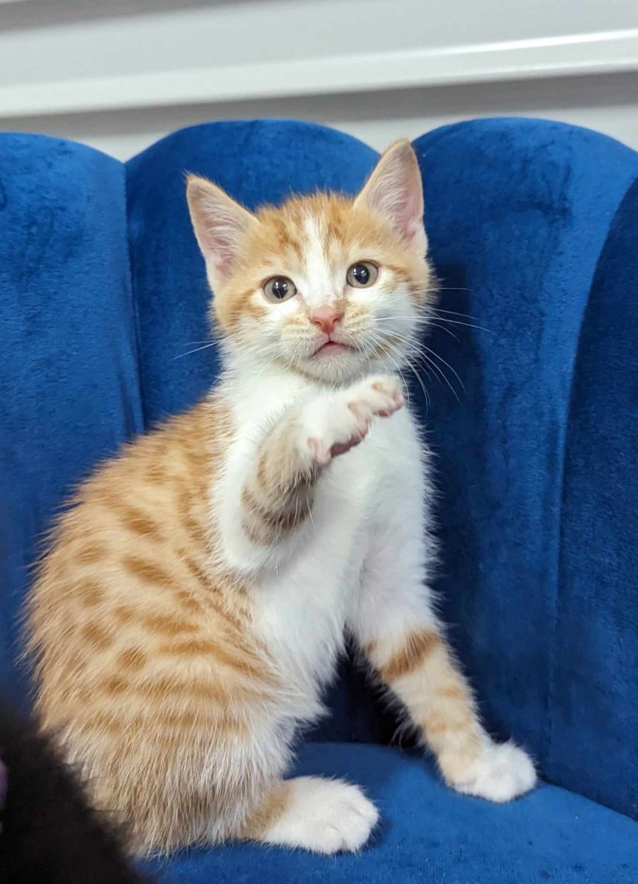 Mango & his siblings were another orphaned litter who were brought in at approx 3 weeks of age. These kittens are all playful and cuddly little purr machines. They love exploring and getting themselves into your typical kitten mischief.