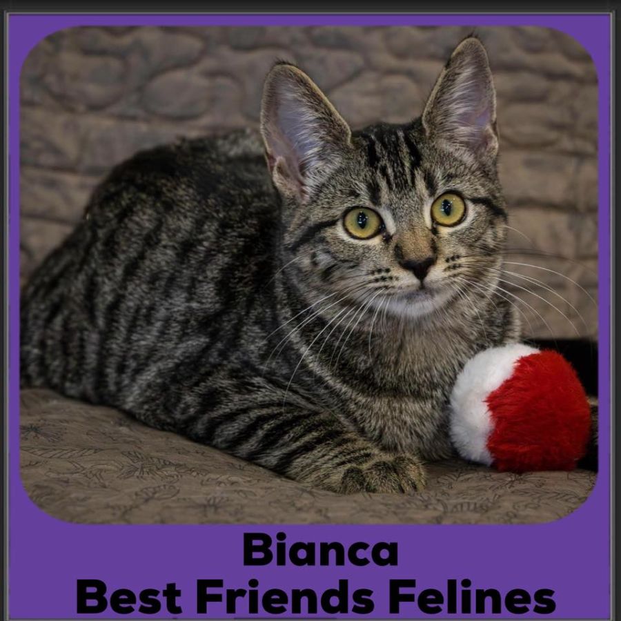 Bianca enjoys running around exploring with her sister and loves play time with a cat teaser, a favourite shoelace or balls with feathers or bells. She is also an expert at using cardboard scratchers, scratching poles and the cat tower.