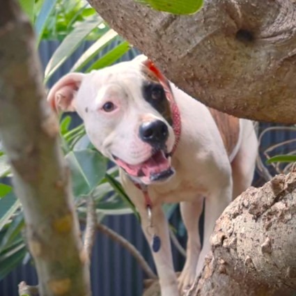 This sweet girl's playful nature is complemented by her love for soft toys and her curiosity to explore. She even likes to try to climb trees to investigate any lizards that may be inhabiting them... Roxy also enjoys some of the simple pleasures in life like a good bone to chew on, lively walks, or a lovely run in a park with other dogs. She particularly loves an outing to the beach where she can splash around in the water.