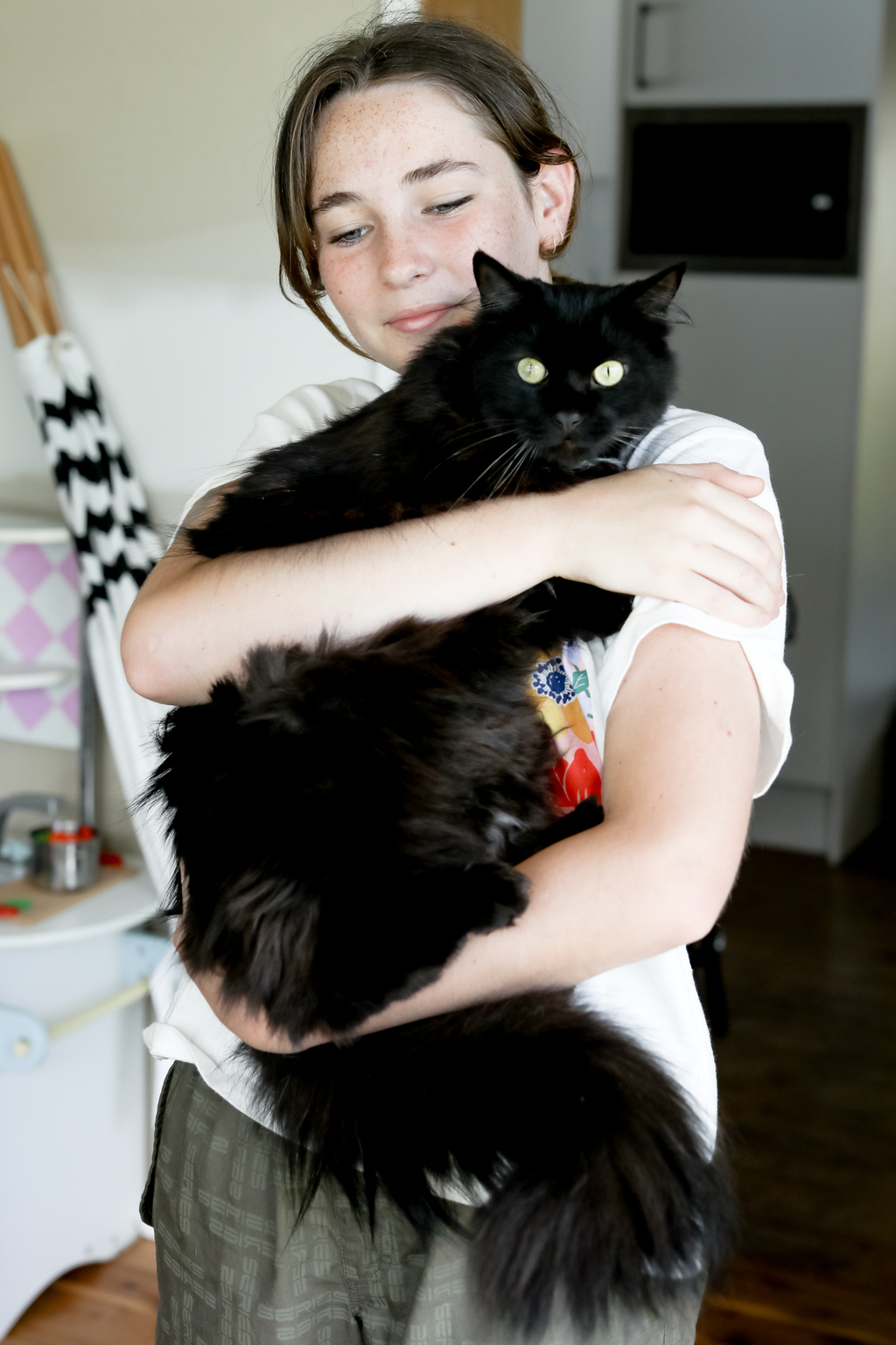 Magnus is a Ragdoll cross, which means he is big! We have included a couple of photos of Magnus with someone so you can see his size, he really is Roald Dahl's BFG in cat form.