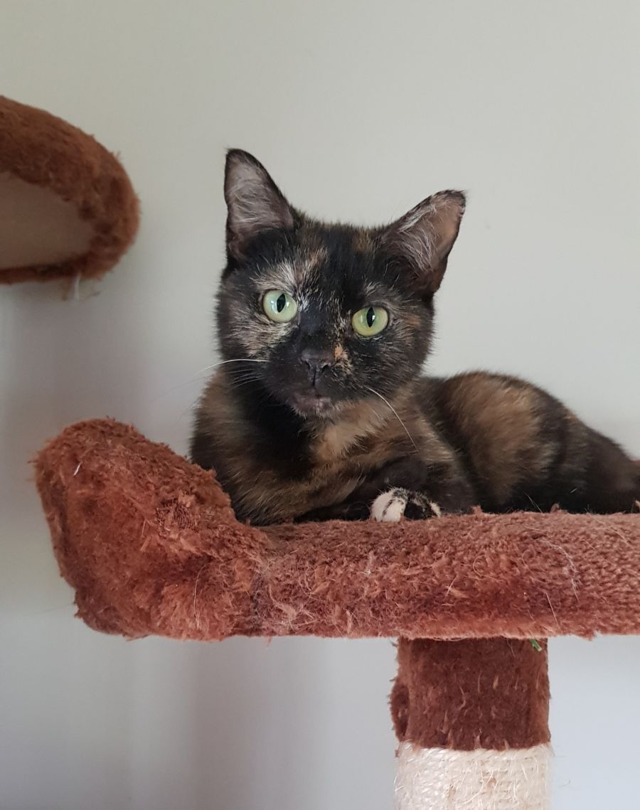 Toffee has been residing with other cats who she mainly interacts well with but only occassionally seeks them out for company so would do well as an only cat. She has meet an enthusiastic dog and whilst she was hesitant with the behaviour we believe she would be fine with a quiet respectful dog.