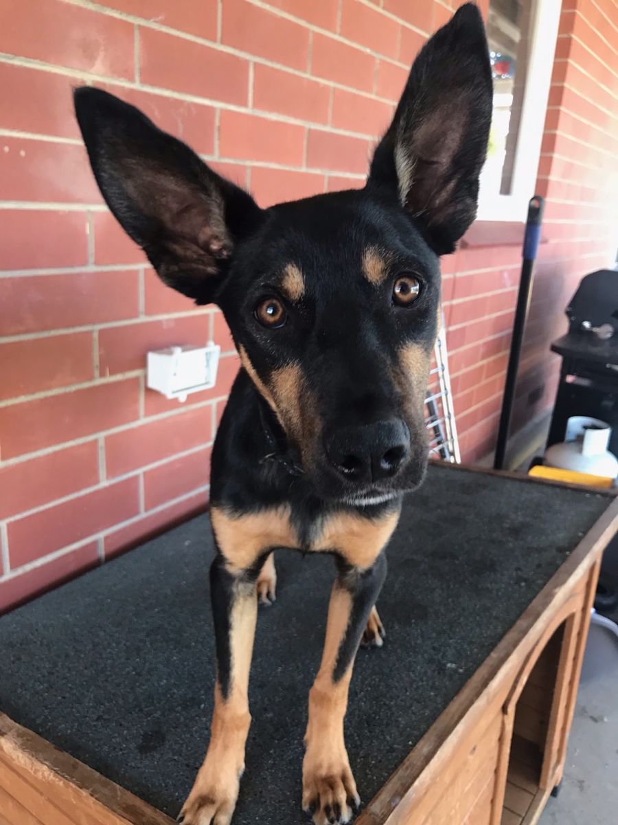 Hi, my name is Blitzen! I’m a sweet and snuggly black and tan kelpie boy! I have extra long ears and extra big feet, so I’m going to be quite tall!