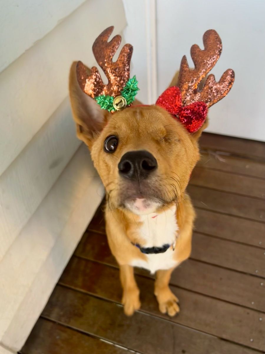 Toby loves to race around the yard playing chase with the big dogs and will even join in with their rough and tumble play. He loves going on adventures with his humans during the day and spending his evenings sneaking cuddles.
