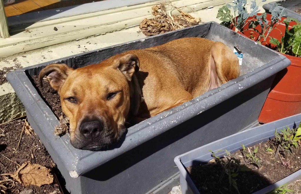 Marty is listed as Mastiff x but looks more like a staffy x kelpie, perhaps with a little mountain goat mixed in as he is very agile and loves to climb.