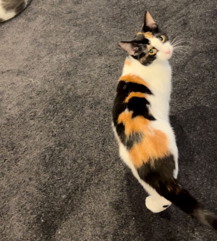 She can be a bit shy at first but once she gets to know you she will run towards you happily when you walk into the room, be rubbing up against your legs and purring away wanting your attention.