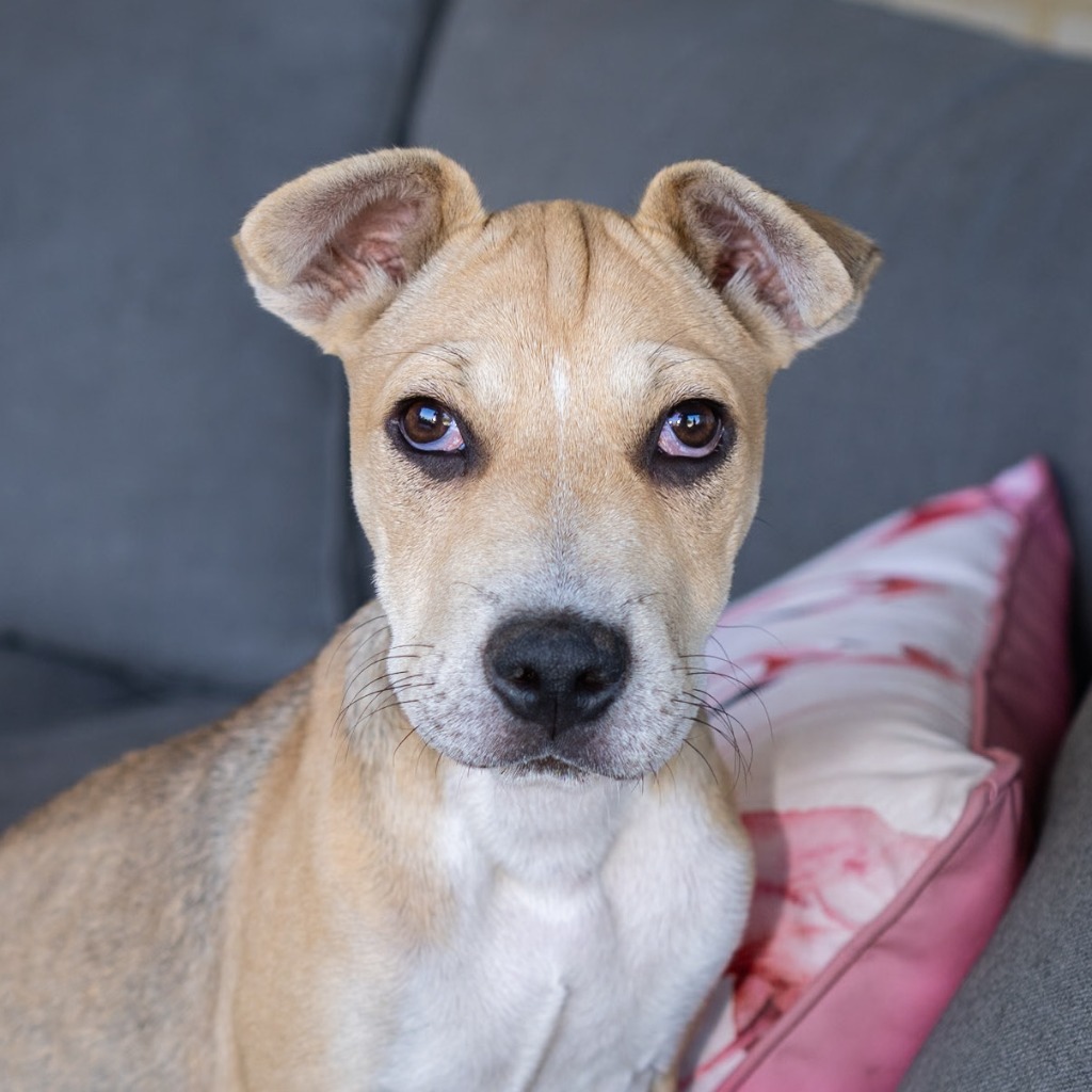 I'm Camellia and I'm ready for my family or individual to adopt me! I would be suited to a family or owner who will play, go on walks and adventures, then snuggle up and have a cuddle - with me of course! My carer tells everyone I am a real sweetheart and that I aim to please. I am currently living with dogs, cats and kids so I am an adaptable and well socialised pup. With time invested in my training as I grow, I will be an awesome addition to any dog loving home.