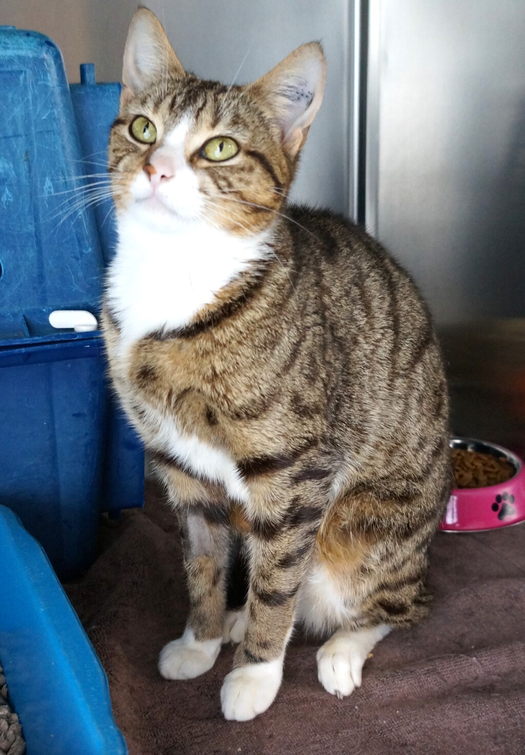Meet Lucy, a charming and delightful three-year-old cat who is eagerly searching for her forever home. This beautiful female cat has a stunning tabby and white coat with a soft and luxurious texture due to her domestic short hair breed. Lucy's petite size adds to her adorable appeal and makes her an ideal companion for any household.
