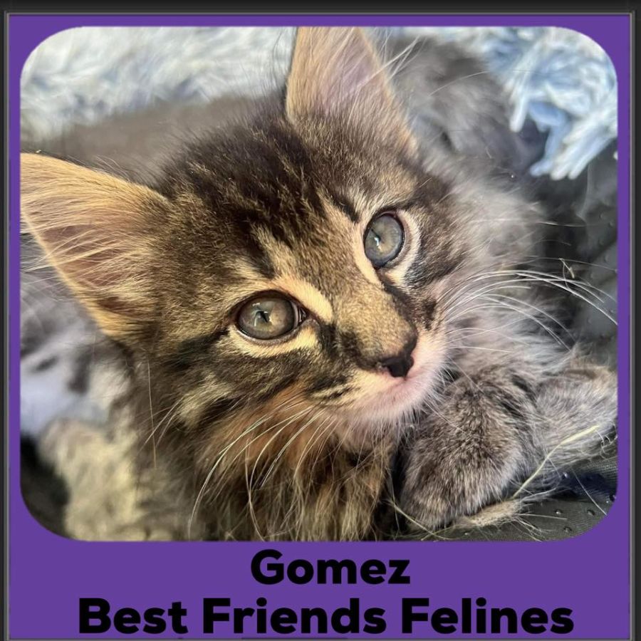 Gomez is going to be a big fluffy dark tabby boy, he’s getting braver each day and is turning out to be very sweet