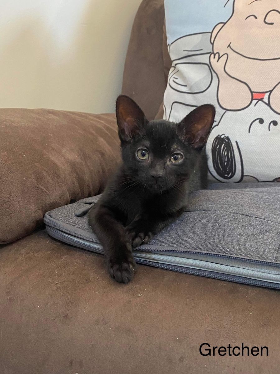 Gretchen is both a joy to watch and a ton of fun to interact with. She bounds through life with untamed enthusiasm and curiosity, ready to turn even the simplest things around the house into her new favorite toy. Whether it is chasing after a piece of string or cheekily pouncing on an unsuspecting shoelace, her playful nature is bound to keep you entertained every day.