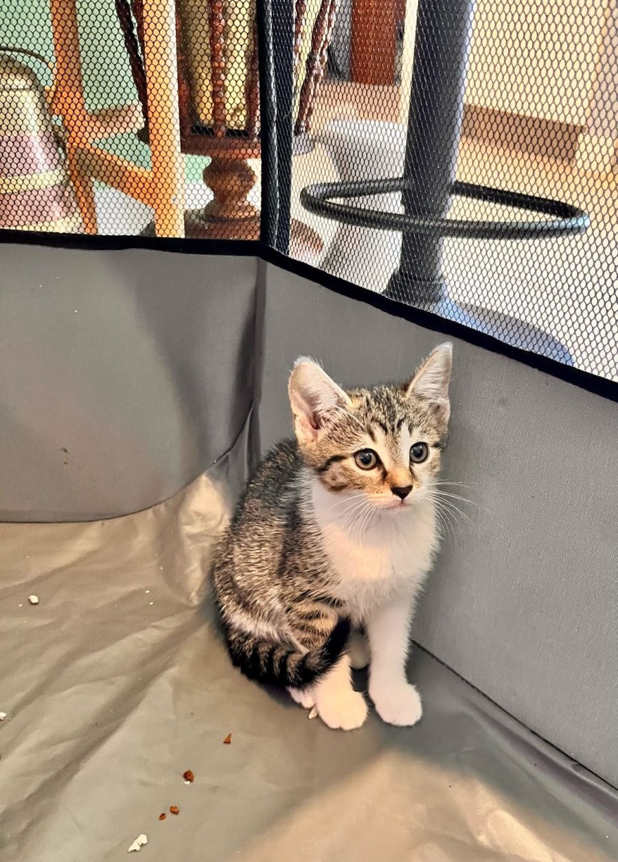 Basil is a beautiful tabby and white boy with pretty markings. He's a friendly and curious man who is ready to explore the world!