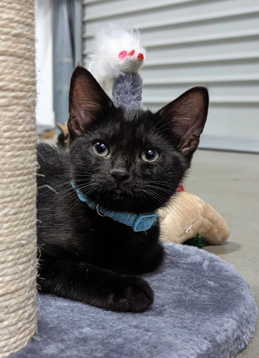 Raven & his sister came from a hoarding house with over 15 other cats & kittens. These two are playful and cuddly little purr machines. They love exploring and getting themselves into your typical kitten mischief. Raven has taken on a "big brother" role to some of the younger kittens we have in care.