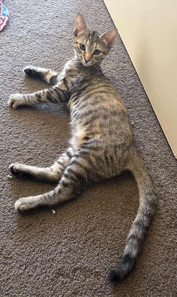 She is a litter box pro and pretends to hate attention but purrs away when given scratches and nice strokes.