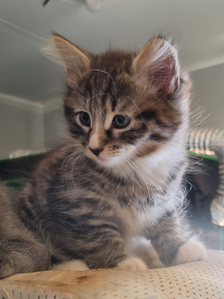 Tinsel is not your ordinary kitten; she's a purr-fect blend of playfulness and festive spirit! With her fluffy fur as white as freshly fallen snow, Tinsel embodies the magic of the season. Her eyes sparkle like twinkling Christmas lights, reflecting the joy she brings to every room.