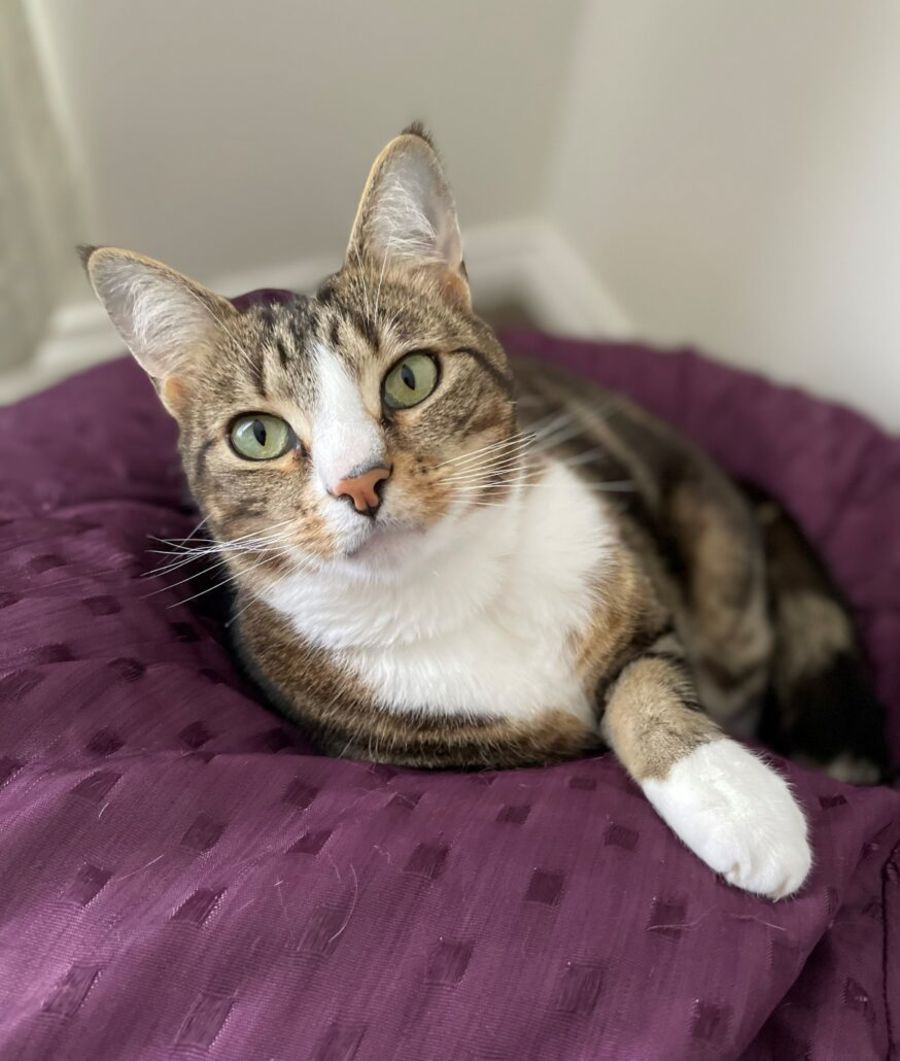 I am a gentle giant who loves watching the outside world, whole body scratches and sleeping on the bed or a comfy spot wherever you are. Sometimes, the urge to be a kitten again comes over me and I will get the zoomies and bat my soft toys around. I also love to climb and scratch so a tall scratching post would be a must. My greatest wish would be a cat run so I could enjoy the outdoors without getting too up close and personal with the birdies.