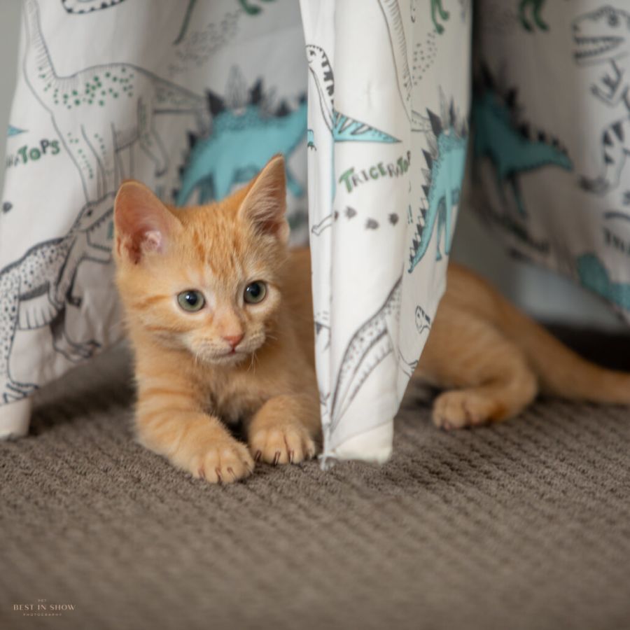 I’m a sweet and cuddly little boy. I love to wrestle with my sister Inej and the other foster cats in the house. Although when I’m tired, I love to snuggle up right next to you. I enjoy climbing up the cat poles or anywhere I can smell food! I have a lot of energy so love to play with lots of toys and tunnels.