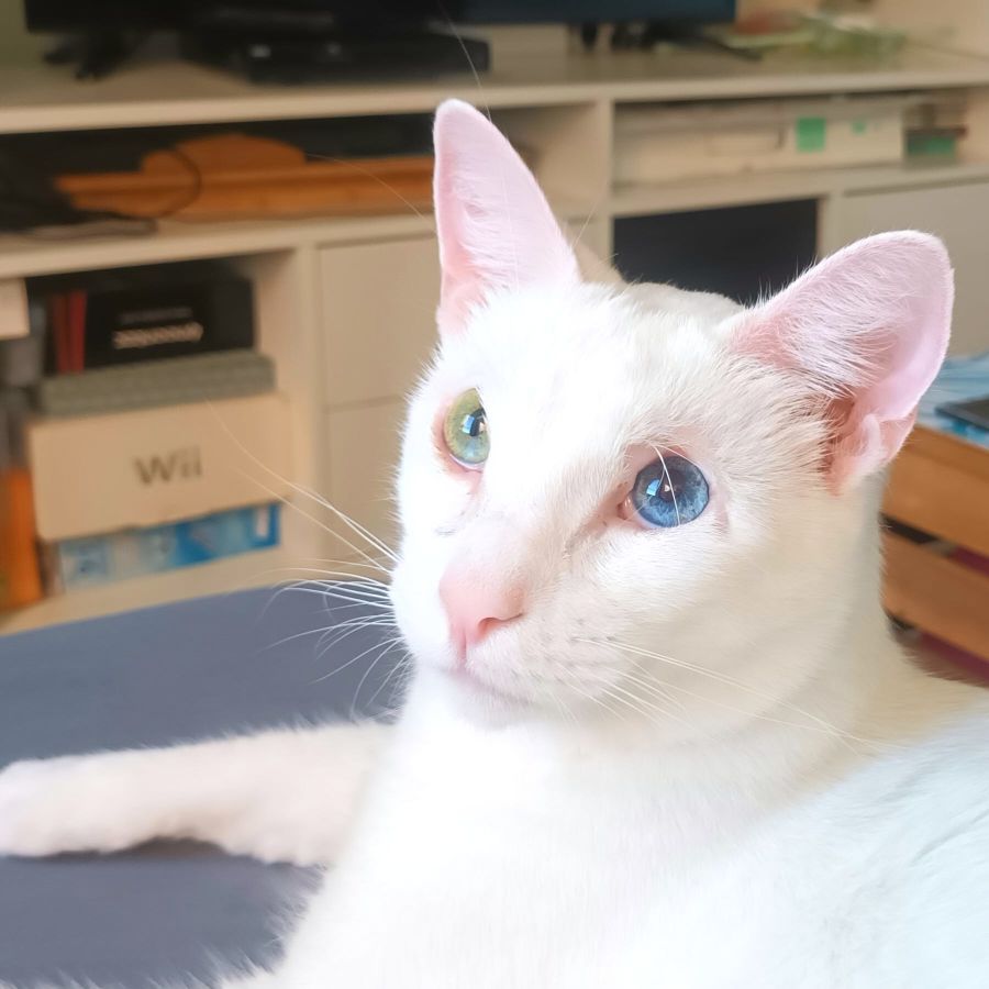 Blessed with a pristine white coat, Tommy J needs a safe indoor environment to protect his delicate fur. He is fully litter trained and has a perfect record of non-accidents, ensuring a fuss-free transition to your home. While he gets along with most cats and has had interactions with dogs, he cherishes one-on-one moments with his humans, therefore, a dog-free home might be preferable.