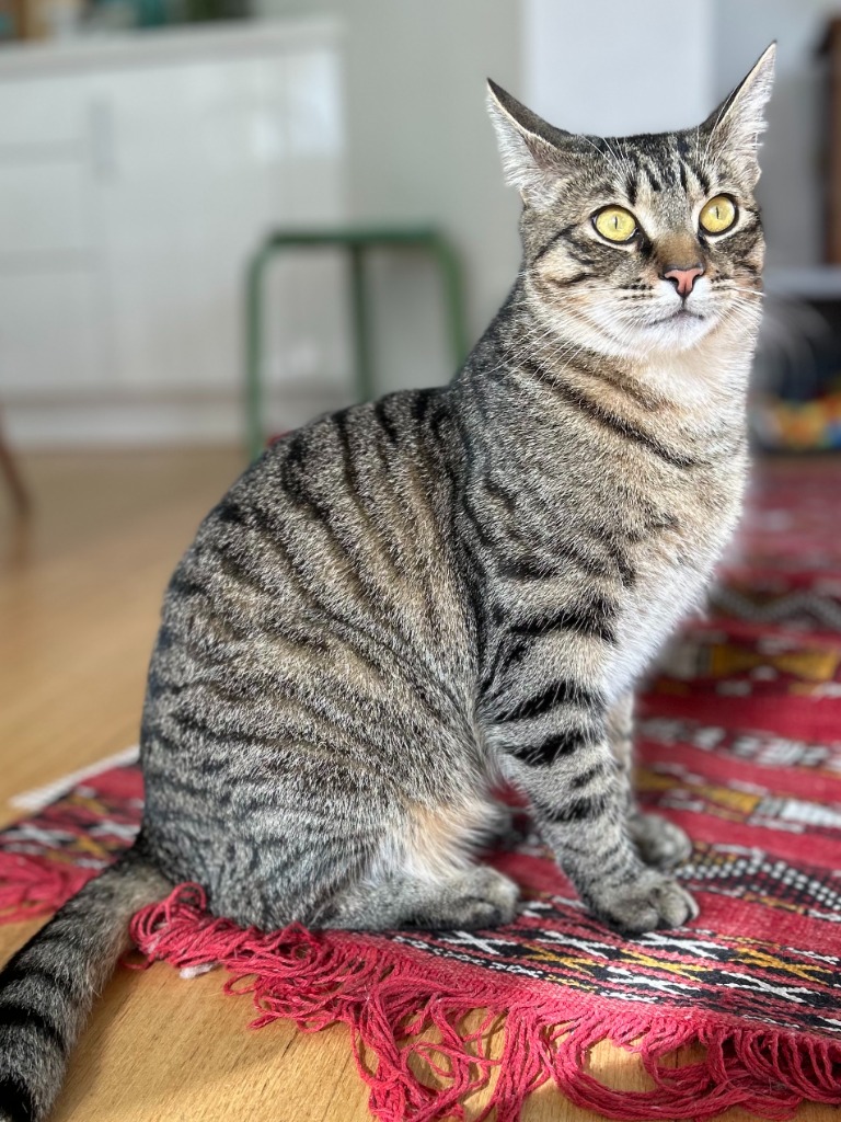 Meet Cricket, a strikingly handsome boy who has blossomed into a regal feline. Towering over his petite mum, Summer. Cricket’s long, lean physique occasionally resembles that of a lynx. His golden eyes and winged eyeliner add to his majestic appearance, and you’ll find yourself willingly attending to his every need (not that you’ll mind).