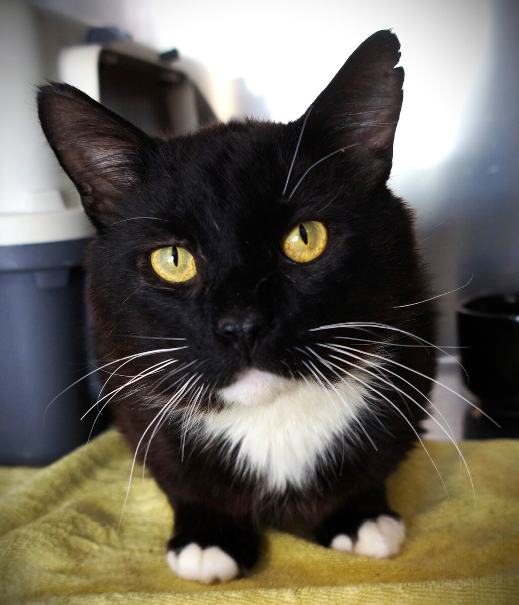 Meet Ebenezer! This handsome 3-year-old male cat is looking for his forever home. With his striking black and white coat and endearing face, Ebenezer is sure to melt your heart.