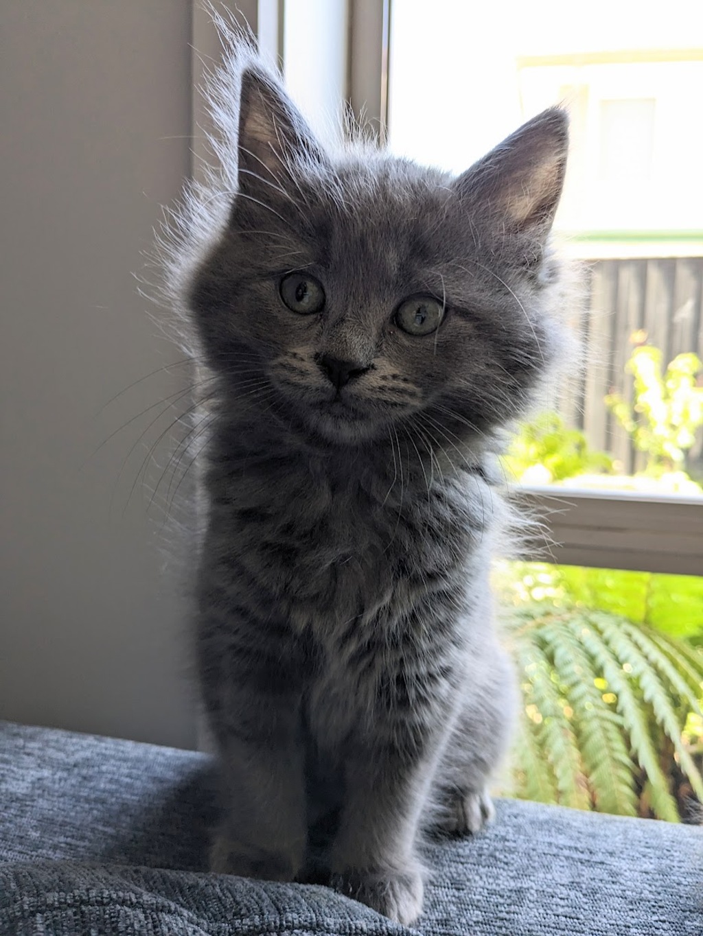 I have long and thick grey hair that is soft as a cloud, and eyes that will make your heart melt. I'm cheeky, loving and very funny! I expect i'll grow to be a big girl, so if you're looking for a big, sweet and cuddly teddy bear for a cat, you've found the one!