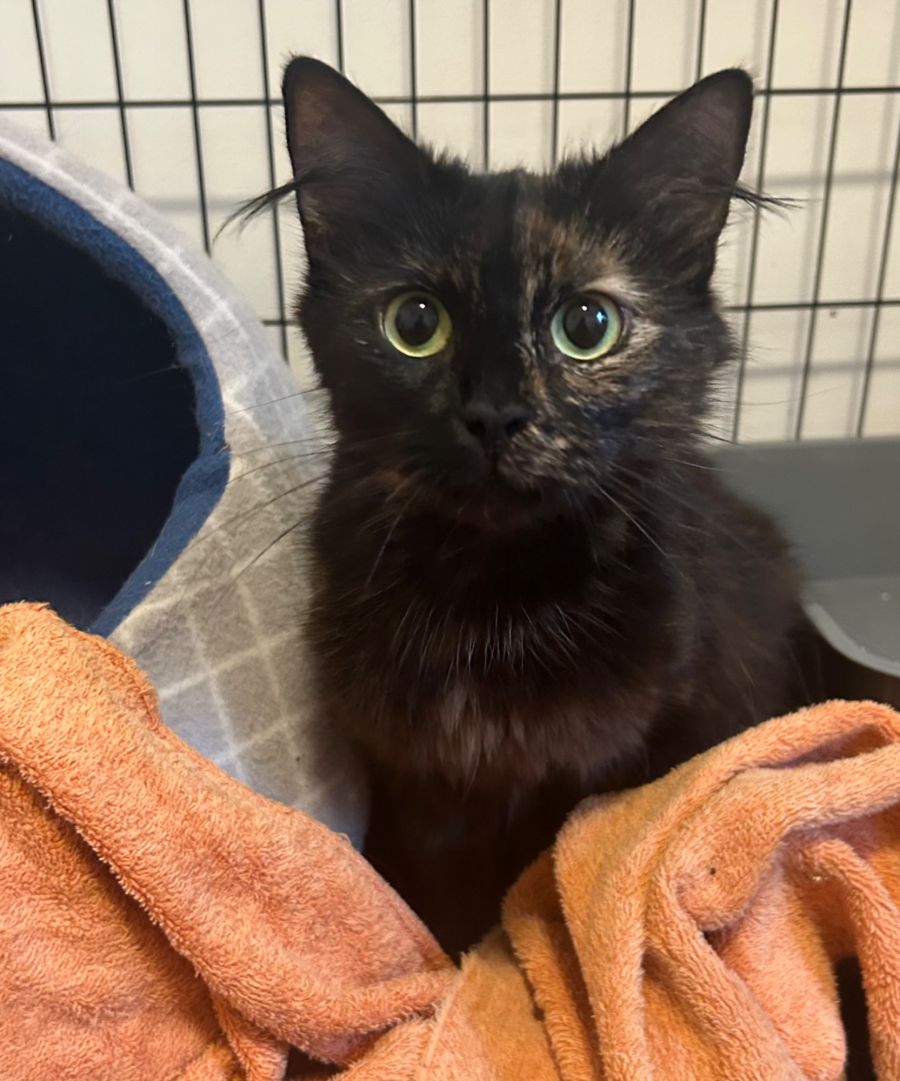 She is a special girl as she has such a beautiful distinct line across her face, big green eyes, a lovely fluffy tail and a total heart of gold.