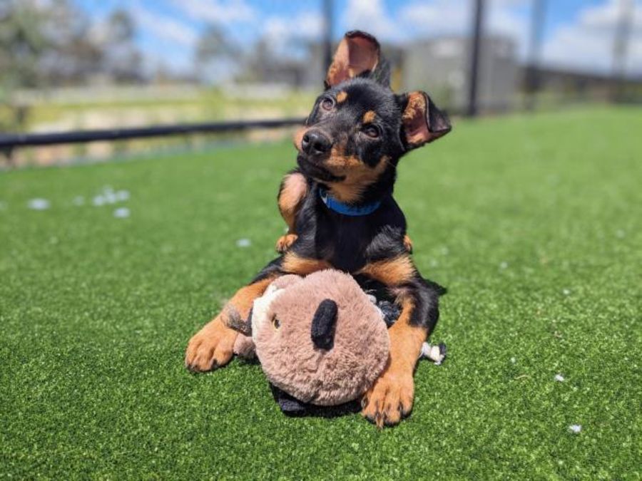 Scotty adores playing with soft toys and loves the opportunity to just let loose and be a puppy. He's an energetic little guy, who loves cuddling as much as he enjoys taking a run in the yard. He's clever and receptive, and with consistency, he has displayed a notable ability to learn new behaviours. Having interacted with the other dogs at the centre, Scotty has shown that while he does love to play, he can sometimes come across a bit rough and over bearing. However, this is nothing more than a testament to his puppy energy, and he just needs another doggy companion to help him learn his social manners and read dog body language better.