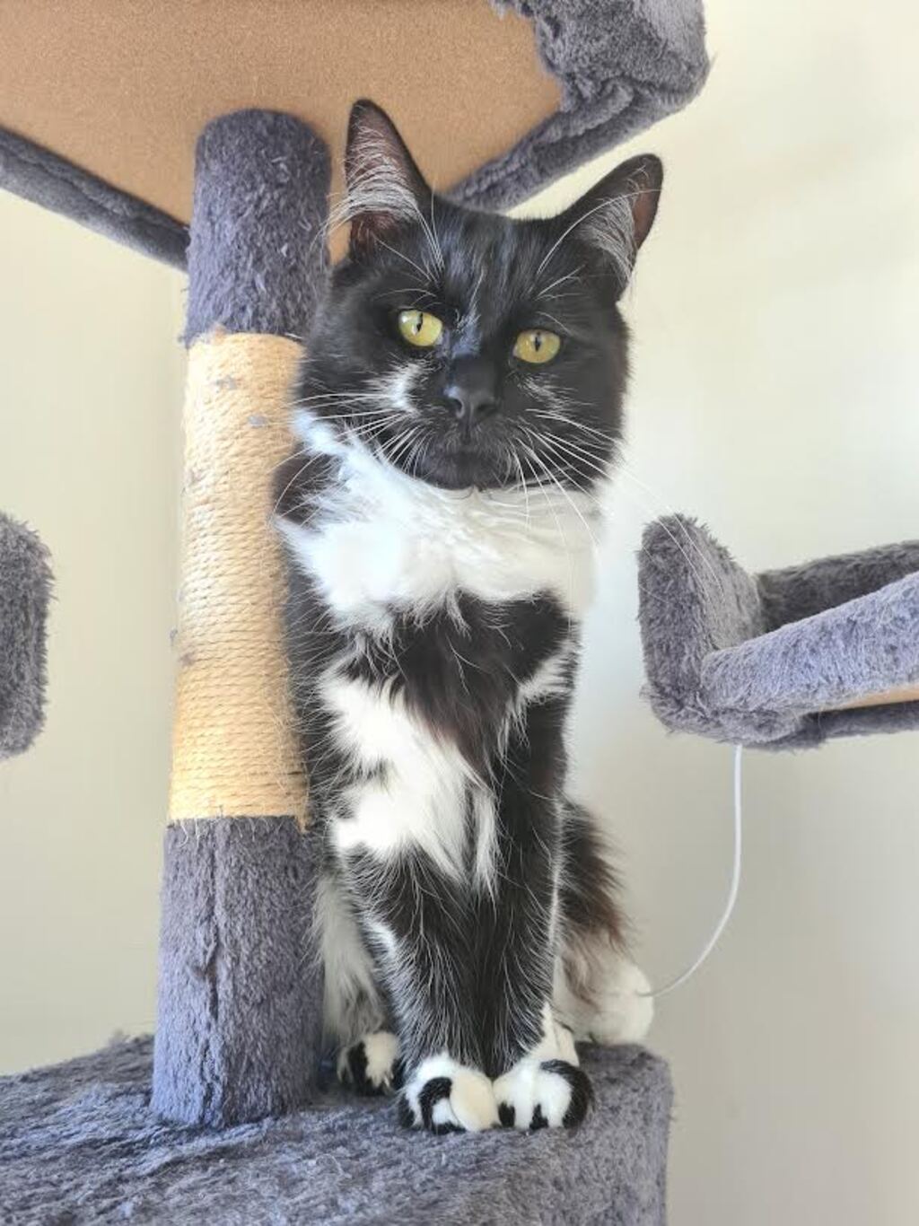 Due to a small over-bite Alby does have resting sad face but he wants you to know he's a very happy boy. He loves playing chase with other small fluffy things and would do great in a house with other young cats but also does well with just his humans and some toys.