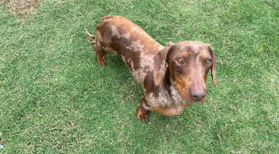 Digby is a 4yo Red Merle Dachshund.