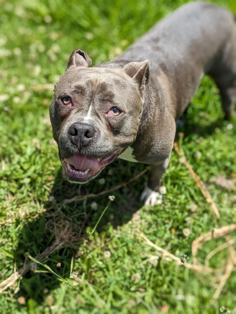 Meet our dynamo, Obi! As an 18-month-old male staffy, Obi is an energetic and friendly pup full of passion for life. He has handsome features and an infectious smile.