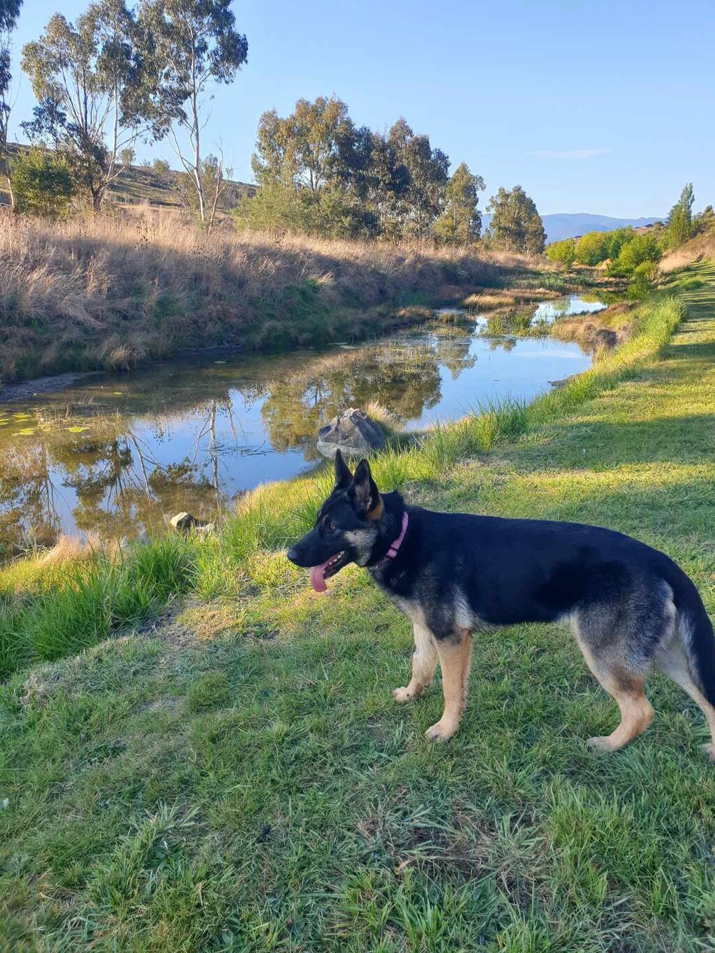 Bee can be quite shy when meeting new people and other animals but given time she comes out of her shell and becomes very loyal and loving, especially when belly rubs are involved. She can get a bit over excited sometimes and be a bit jumpy and give little love nibbles, but this will improve with continued training. We are unsure of what she is like with pocket pets or cats at this stage.