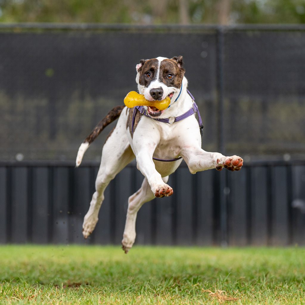 Chloe would be an amazing companion for either a single person or family looking four-legged friend where the kids have experience with dogs. She walks easily on the lead, is food motivated and loves having an abundance of toys. During her time at the shelter, she has learnt to sit, drop, stay, shake and focus her attention on the handler and shows much promise for more.