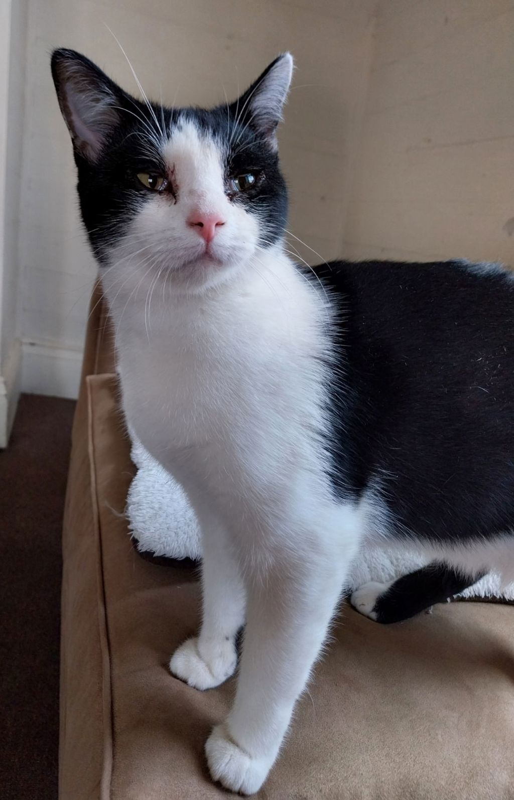 I will never turn down a chin scratch, I'm happy on my own or with other kitty's either way i'm flexible. I will eat most food that i am given not fussy.