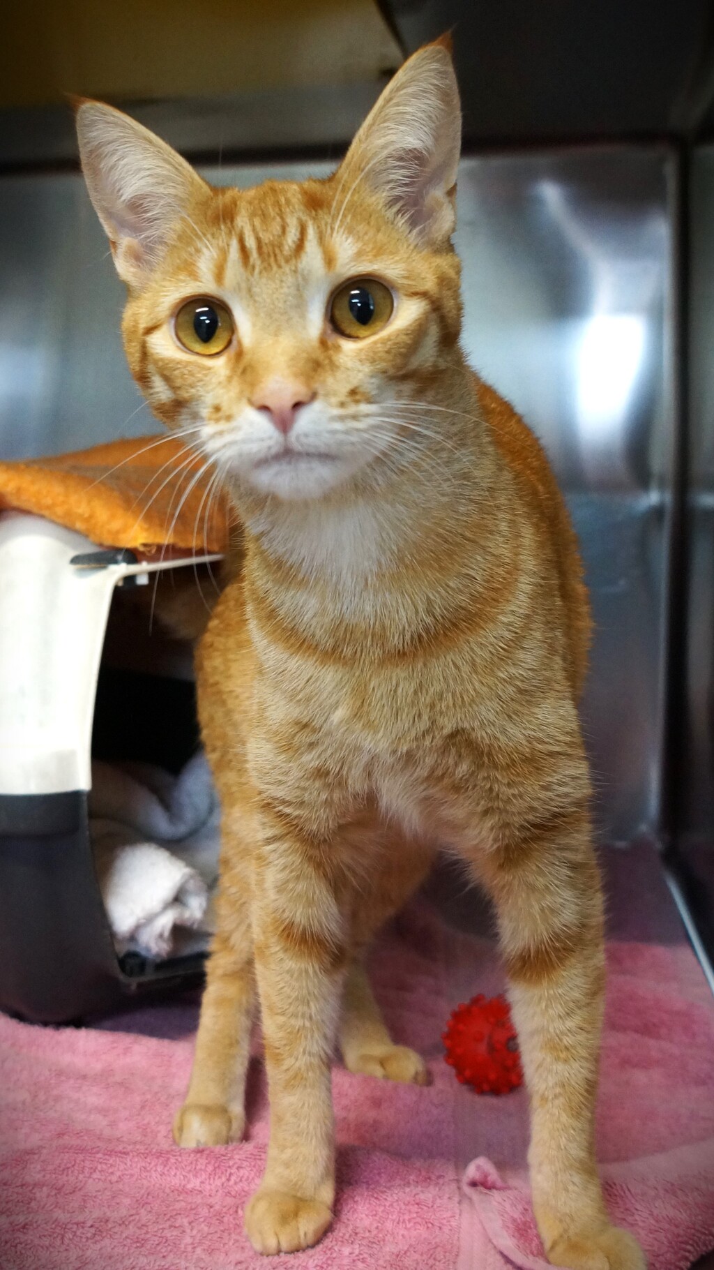 Meet Arlo, a charming male ginger cat who is currently in need of a loving forever home. Arlo is a domestic short hair cat, approximately 16 months old, with a delightful personality that will surely win your heart.