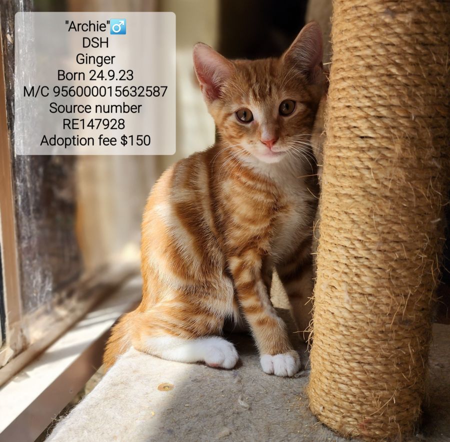 We love this gorgeous boy with his ginger overalls on and his white socks! Archie is the typical Ginger kitten. Always up for a chat and a cuddle. Ginger cats are one of the more gregarious personalities. And Archie is no exception.He loves his siblings and loves his human company too!